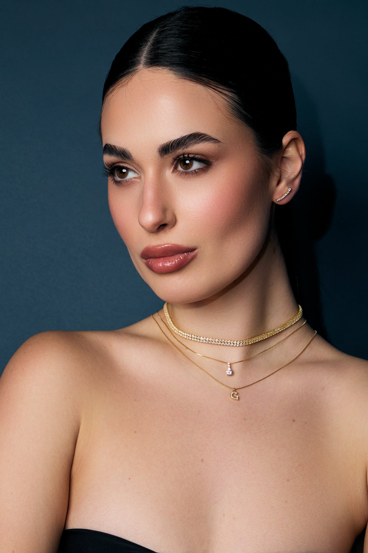 Una goccia di luce sulla tua pelle, ogni pendente è impreziosito da una pietra luminosa che cattura l'attenzione con la sua brillantezza unica.