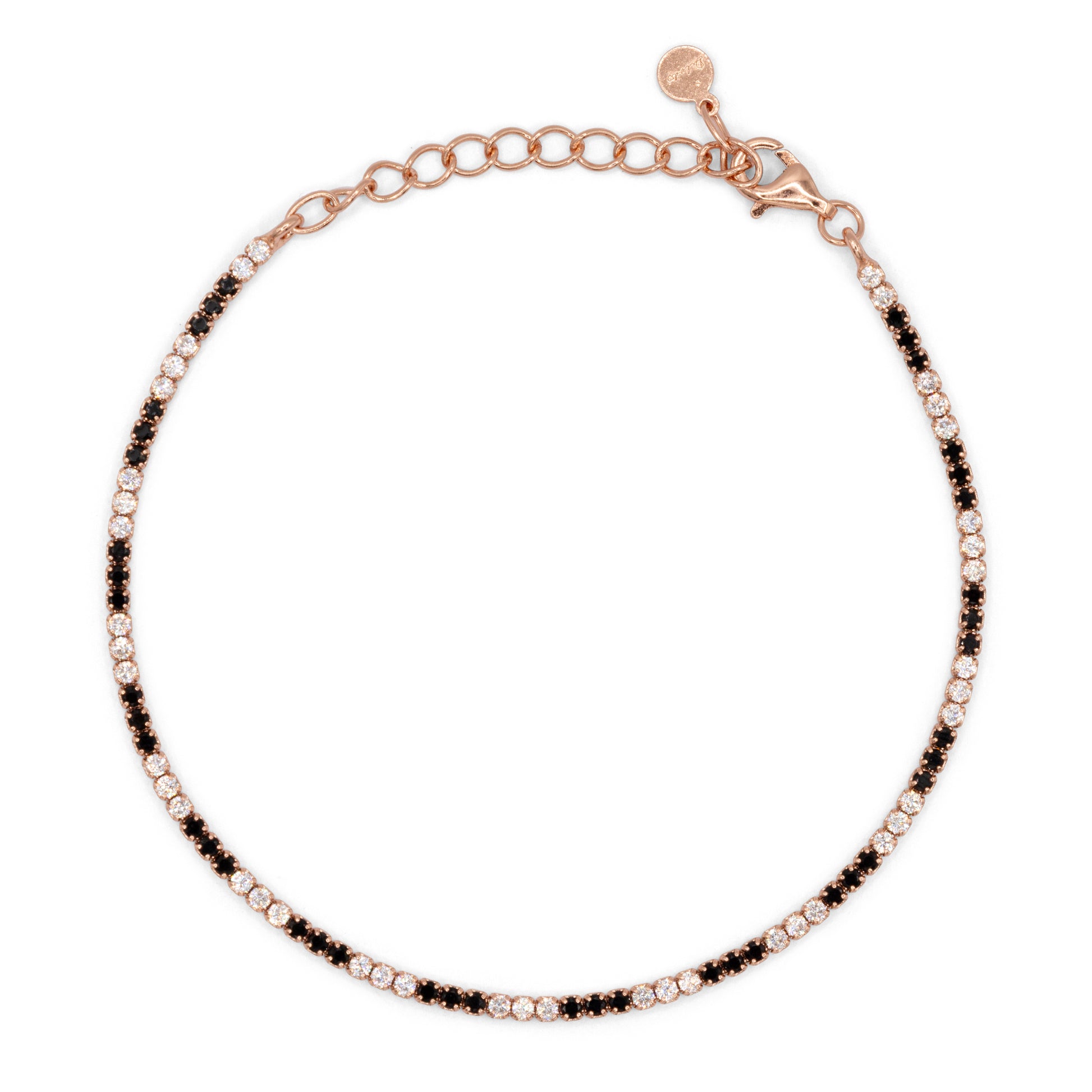 Bracciale in Argento 925 rosè con zirconi neri e bianchi alternati