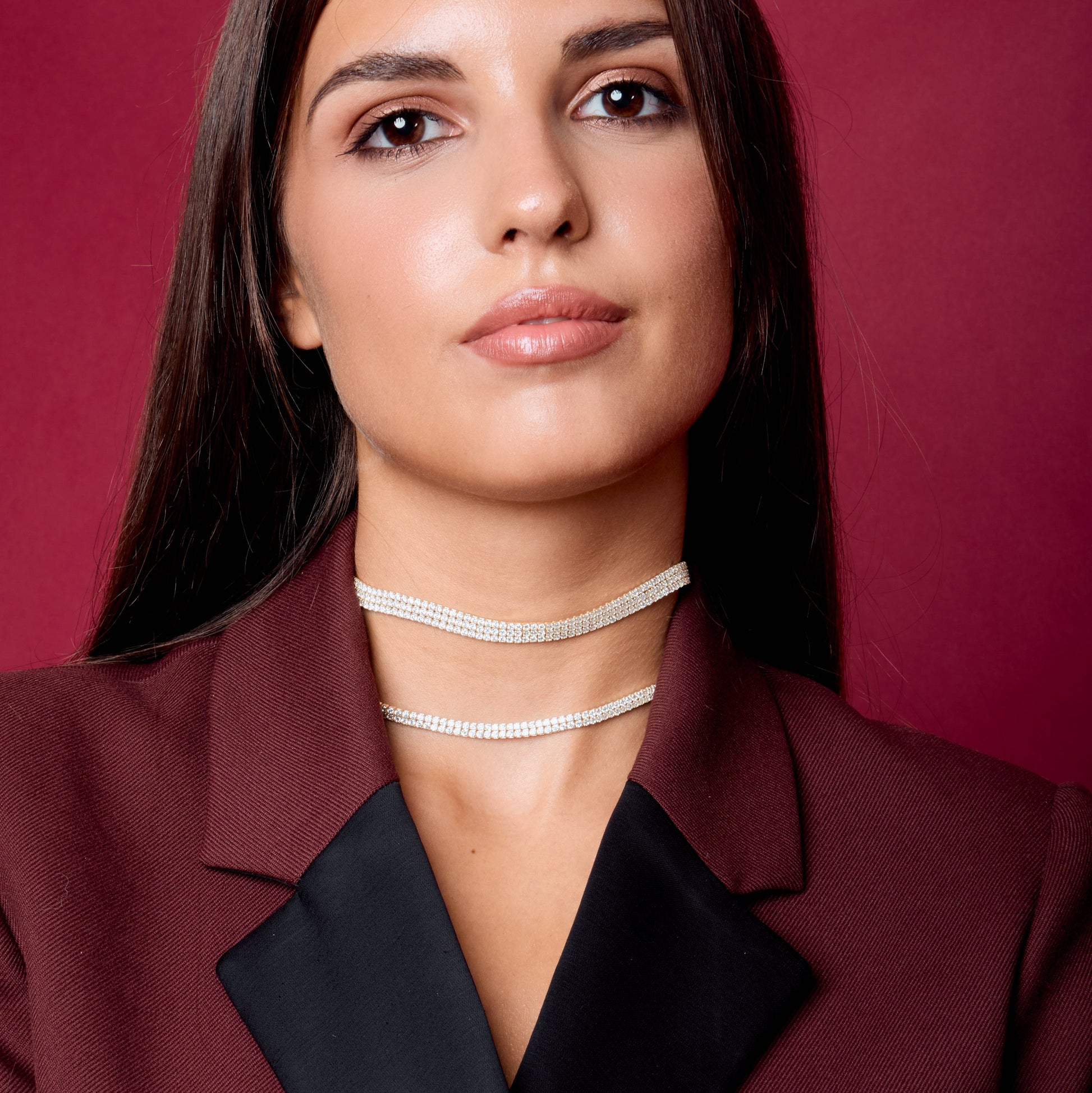 Collana Chocker 3 fili in Argento 925 con zirconi bianchi