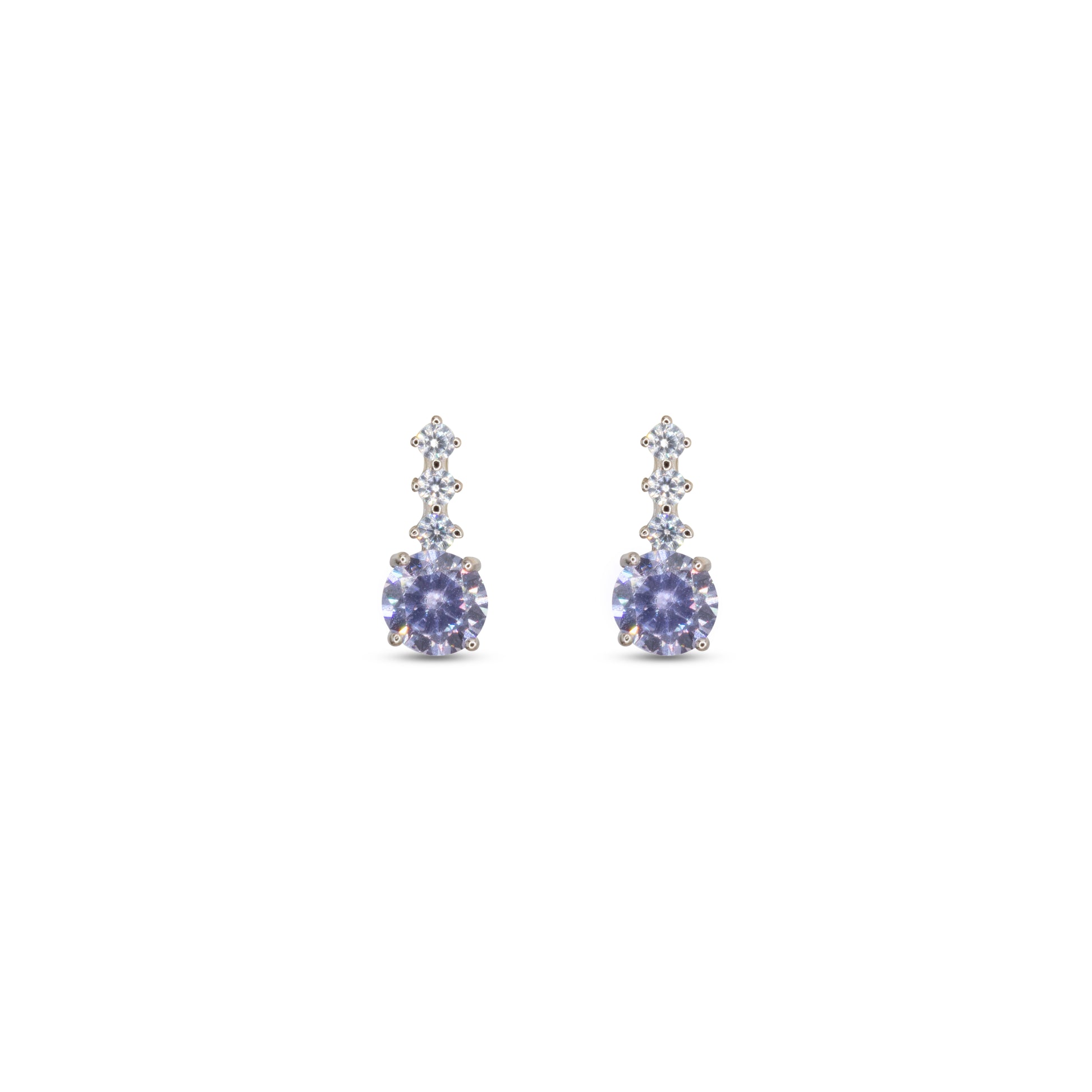 Orecchini pendenti in Argento 925 con grande zircone lavanda e zirconi bianchi