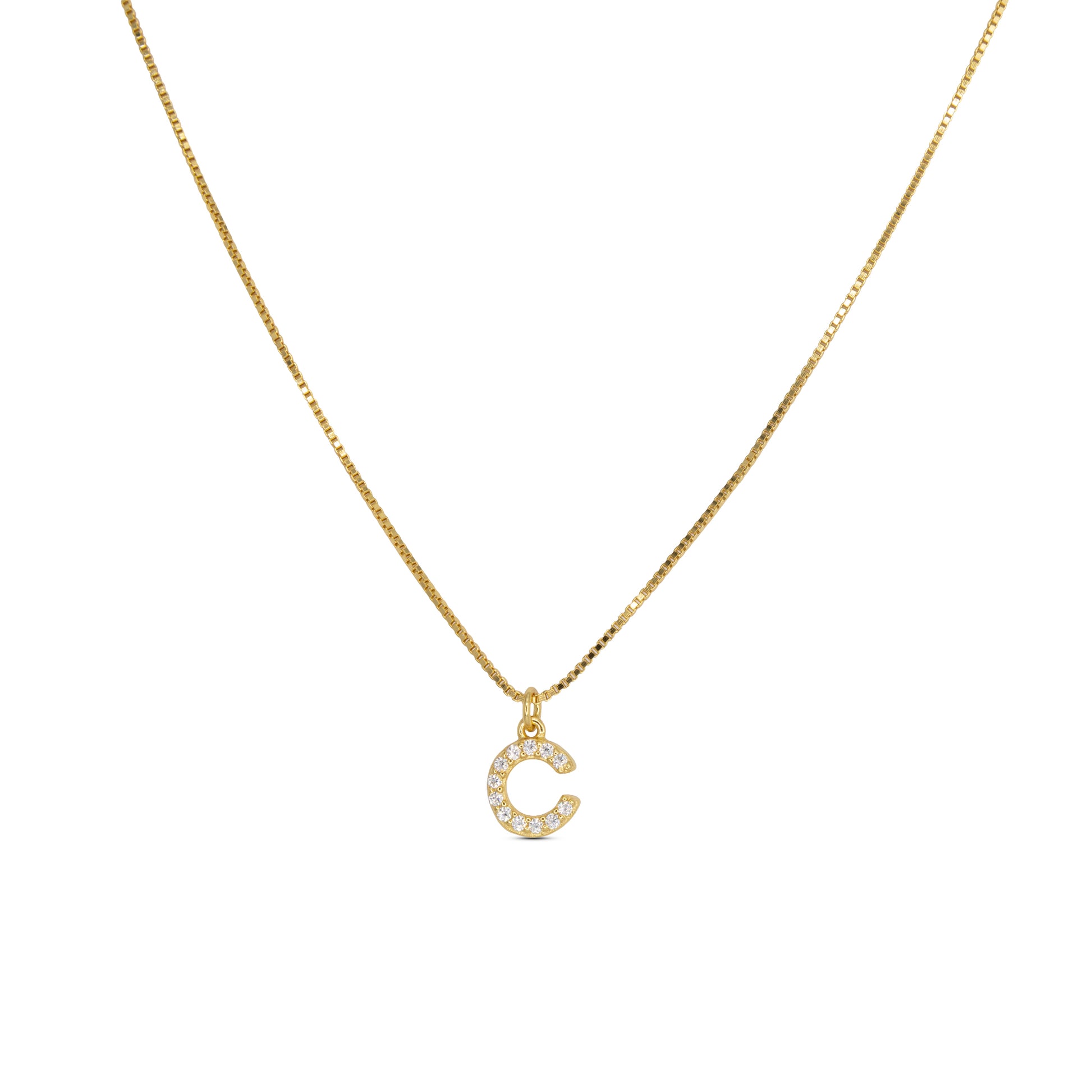 Collana con iniziale "C" in Argento 925 dorato con zirconi bianchi
