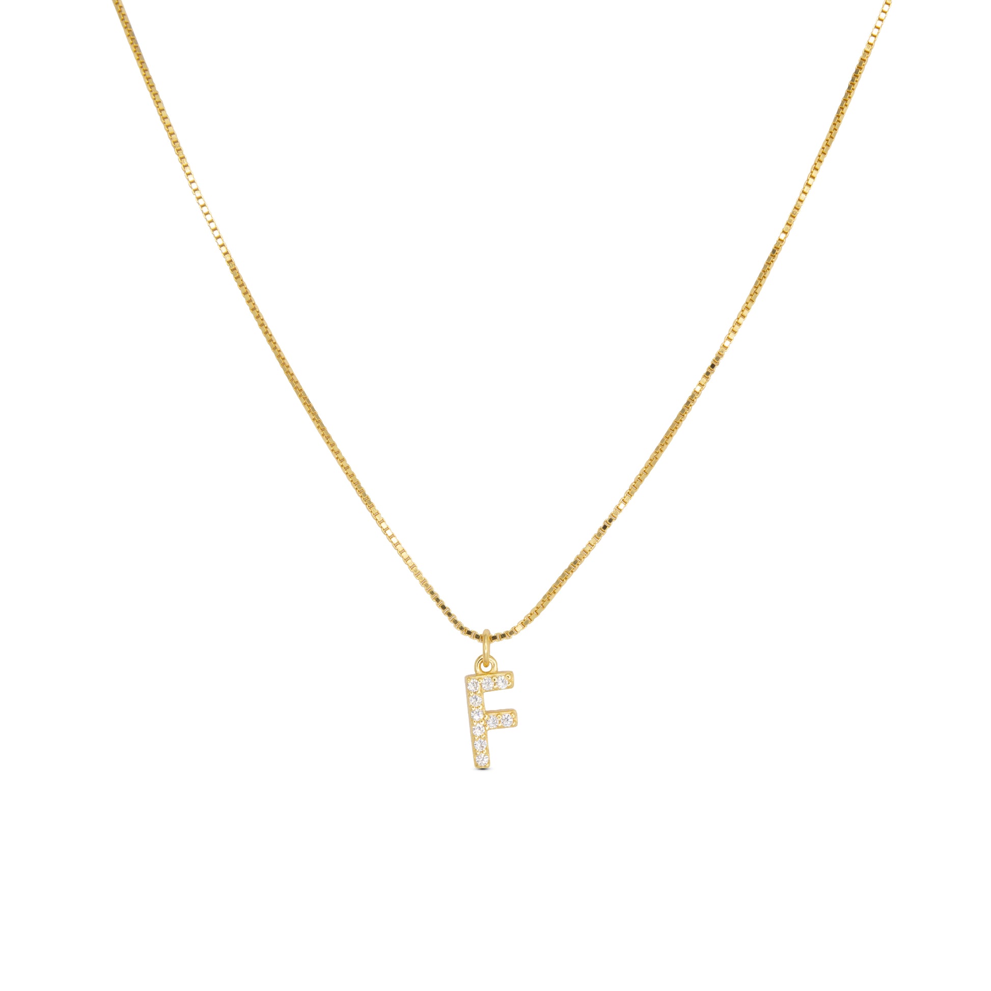 Collana con iniziale "F" in Argento 925 dorato con zirconi bianchi