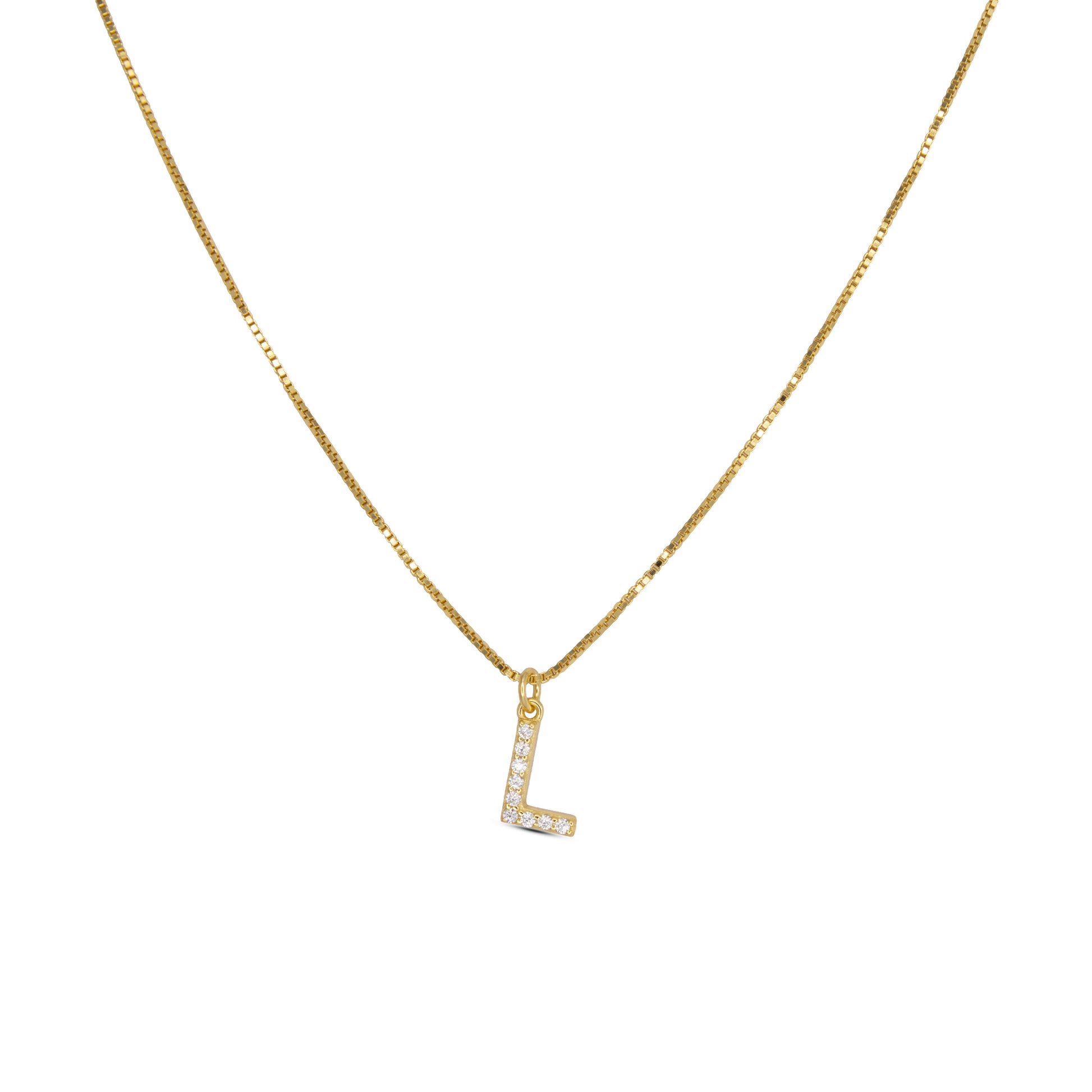 Collana con iniziale "L" in Argento 925 dorato con zirconi bianchi