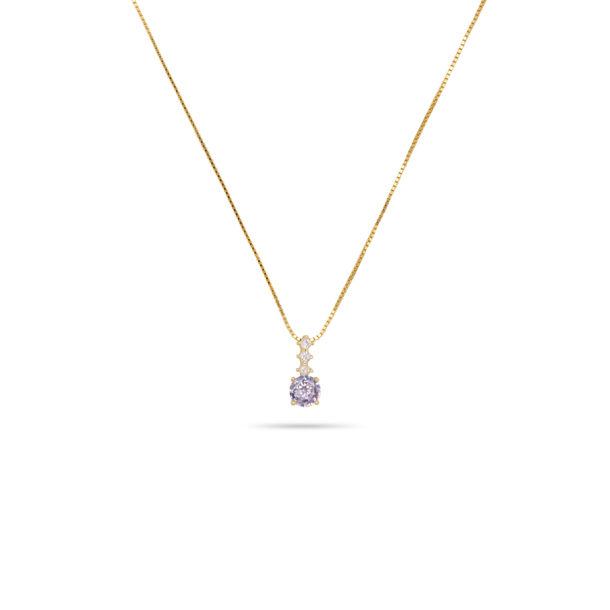 Collana pendente in Argento 925 dorato con grande zircone lavanda e zirconi bianchi