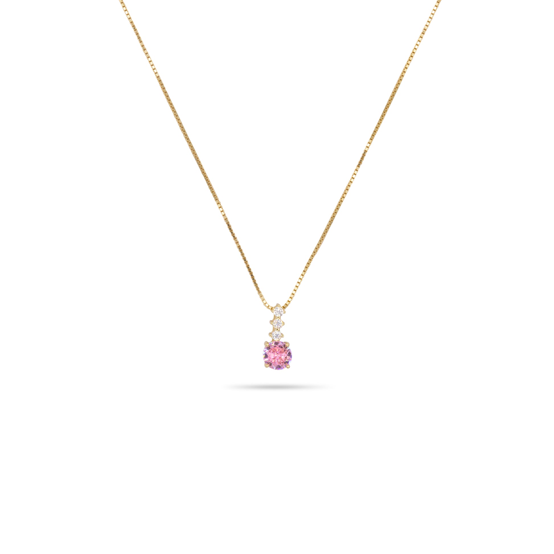 Collana pendente in Argento 925 dorato con grande zircone rosa e zirconi bianchi
