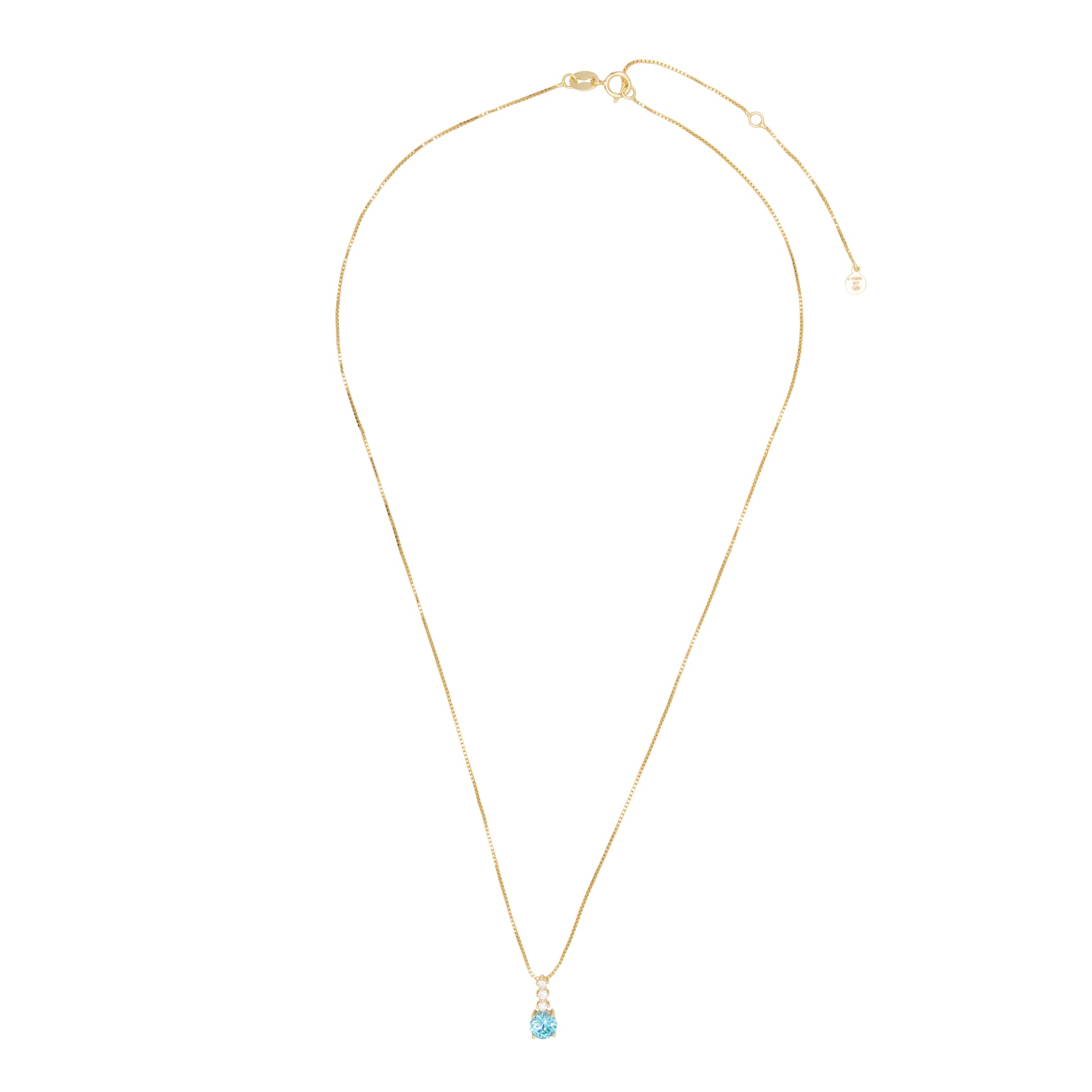 Collana pendente in Argento 925 dorato con grande zircone turchese e zirconi bianchi