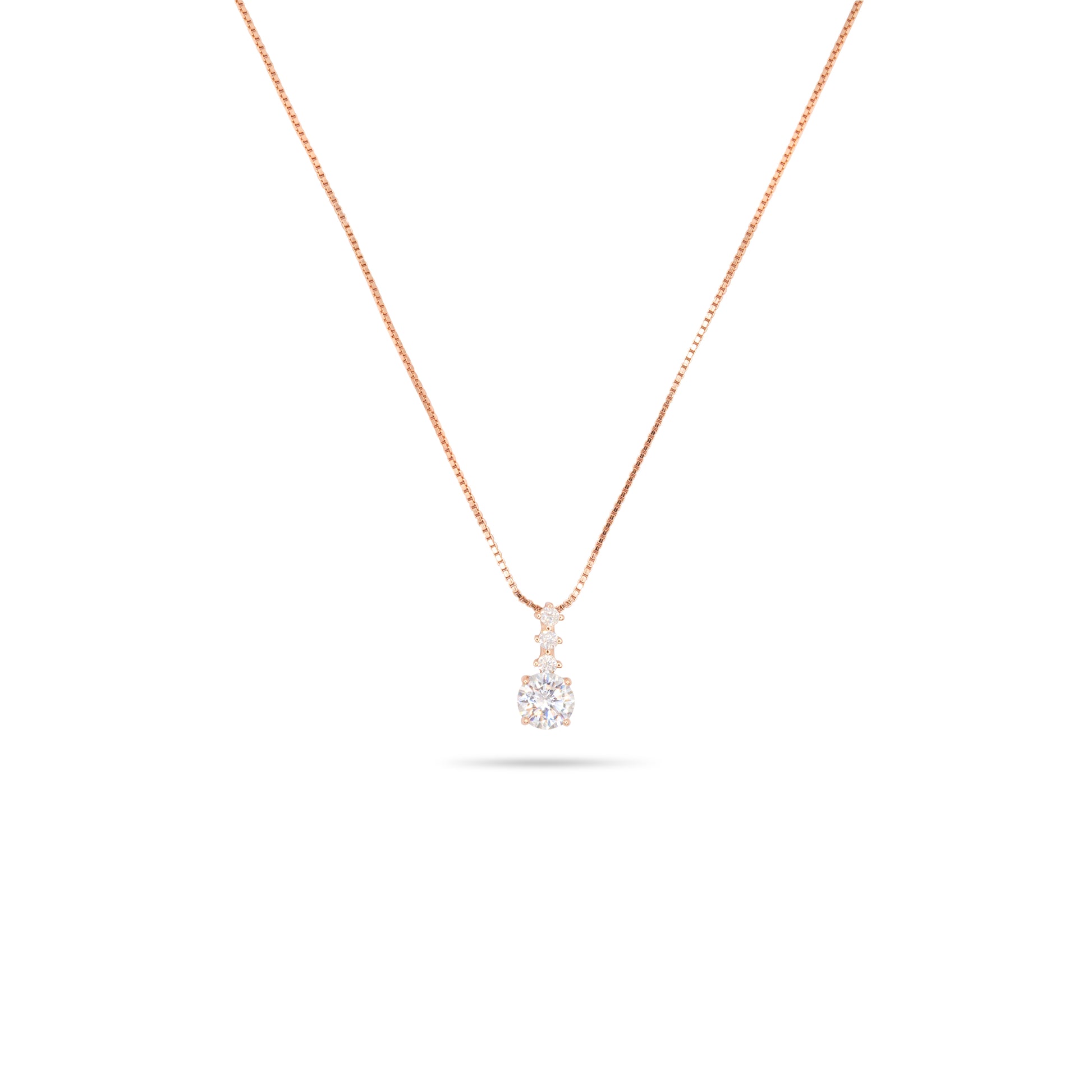 Collana pendente in Argento 925 rosè con grande zircone bianco e zirconi bianchi