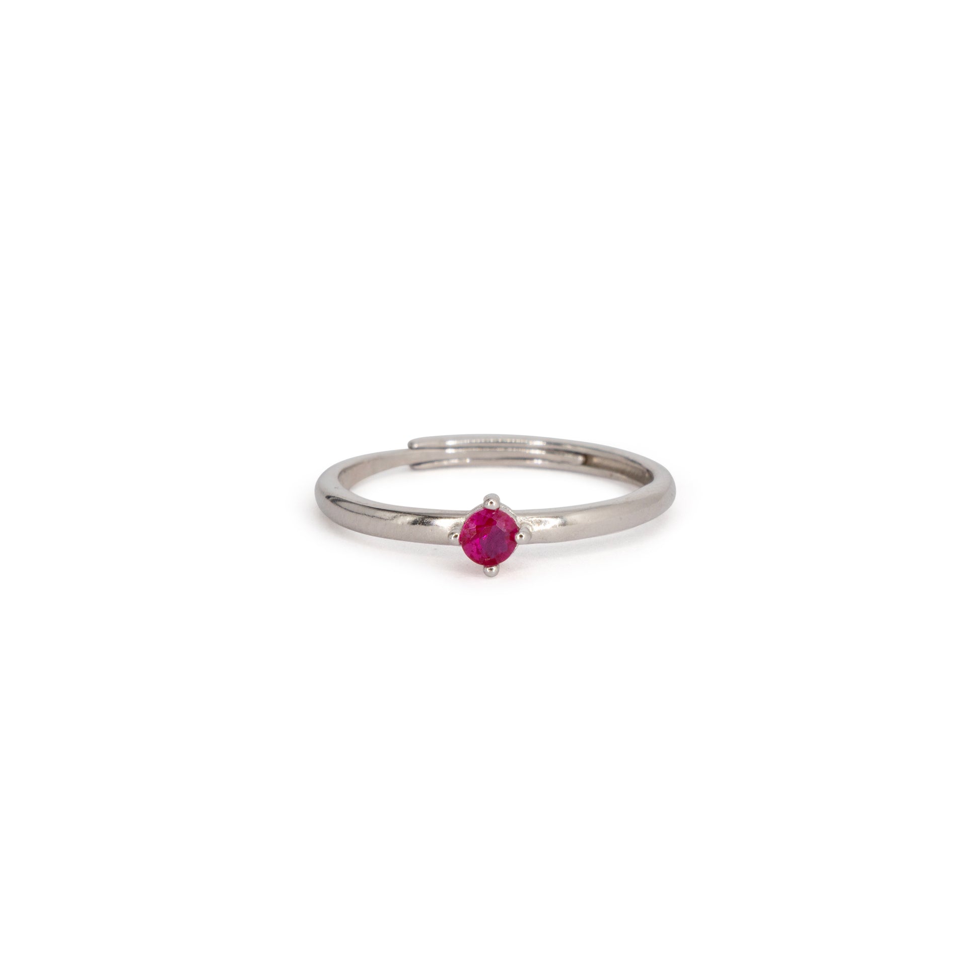 Anello Solitario regolabile in Argento 925 con zircone rubino